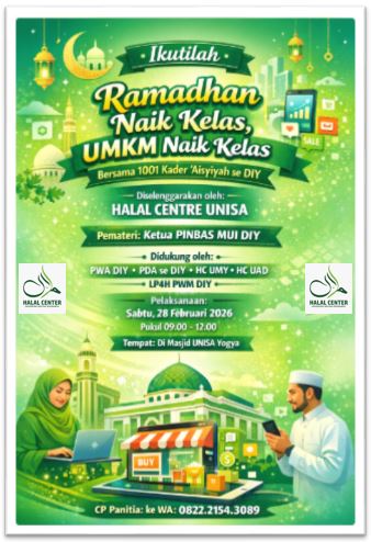 Kegiatan ini diselenggarakan oleh Halal Centre Universitas ‘Aisyiyah (UNISA) Yogyakarta sebagai bagian dari ikhtiar dakwah pemberdayaan ekonomi umat berbasis nilai halal, thayyib, dan keberkahan usaha, khususnya bagi pelaku UMKM perempuan Aisyiyah.